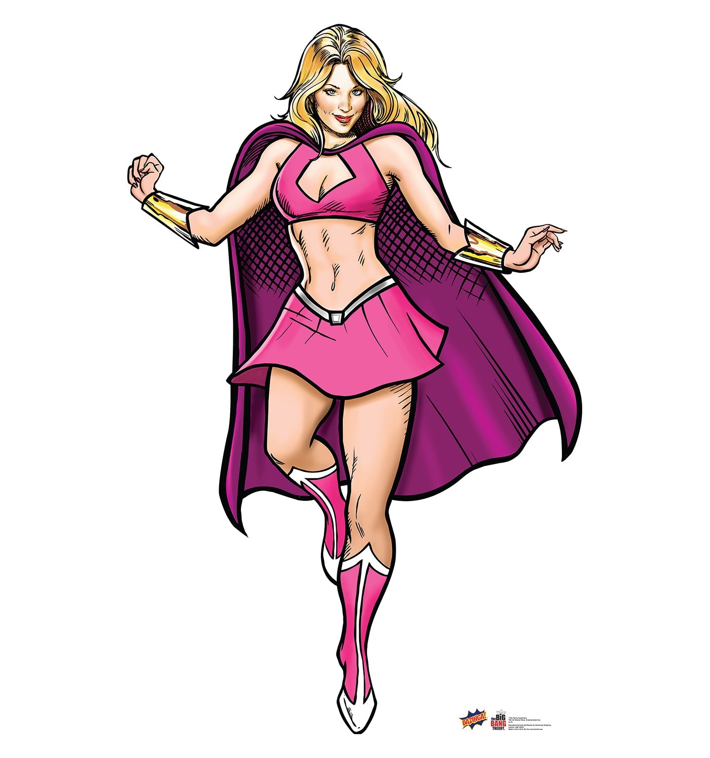 Penny from "The Big Bang Theory" quickly became a beloved character in the hearts of millions. As a strong, independent woman who could hold her own in a room full of uber-nerds, she broke the stereotype of the girl-next-door. Every fan remembers countless moments where Penny brought laughter, warmth, and a touch of reality to the gang's otherwise scientific lives. With our Penny Super Hero Big Bang Theory Cardboard Cutout, you're not just getting a piece of TV memorabilia; you're embracing the spirit of a character who stood as a beacon of relatability and authenticity. Penny's alter-ego in super hero form is an iconic representation of her dual nature—both ordinary and extraordinary. This standee becomes a cultural artifact that connects you directly to the magic of one of TV's most adored sitcoms, allowing her spirit to live on in your home, office, or event.