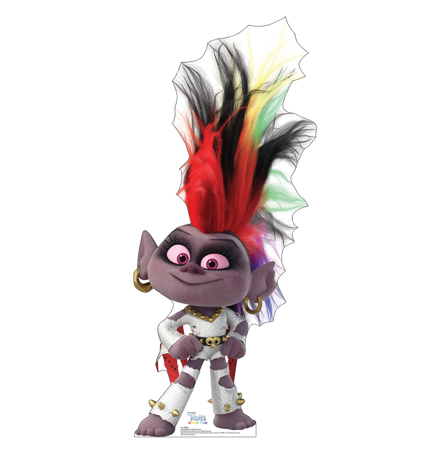 Barb, from Trolls World Tour, is one of the boldest and most spirited characters to come out of DreamWorks Animation. As the fierce leader of the Rock Trolls, Barb embodies the rebellious and unapologetic essence of rock 'n' roll. With her fiery red mohawk, leather outfit, and electric guitar, she radiates energy and charisma that captivates fans of all ages. Barb’s journey in the Trolls World Tour encapsulates her struggle and ultimate realization about the power of unity in diversity. Initially, she sets out with the intention of unifying all the Troll tribes under the banner of rock music, only to learn that harmony lies in embracing different musical styles and cultures. This life-sized custom cardboard cutout of Barb captures her in all her rockstar glory, bringing a piece of her electric personality into your space. Whether you're a die-hard Trolls fan or just someone who admires her audacious spirit, having Barb in the room is sure to add an exciting edge to your décor.