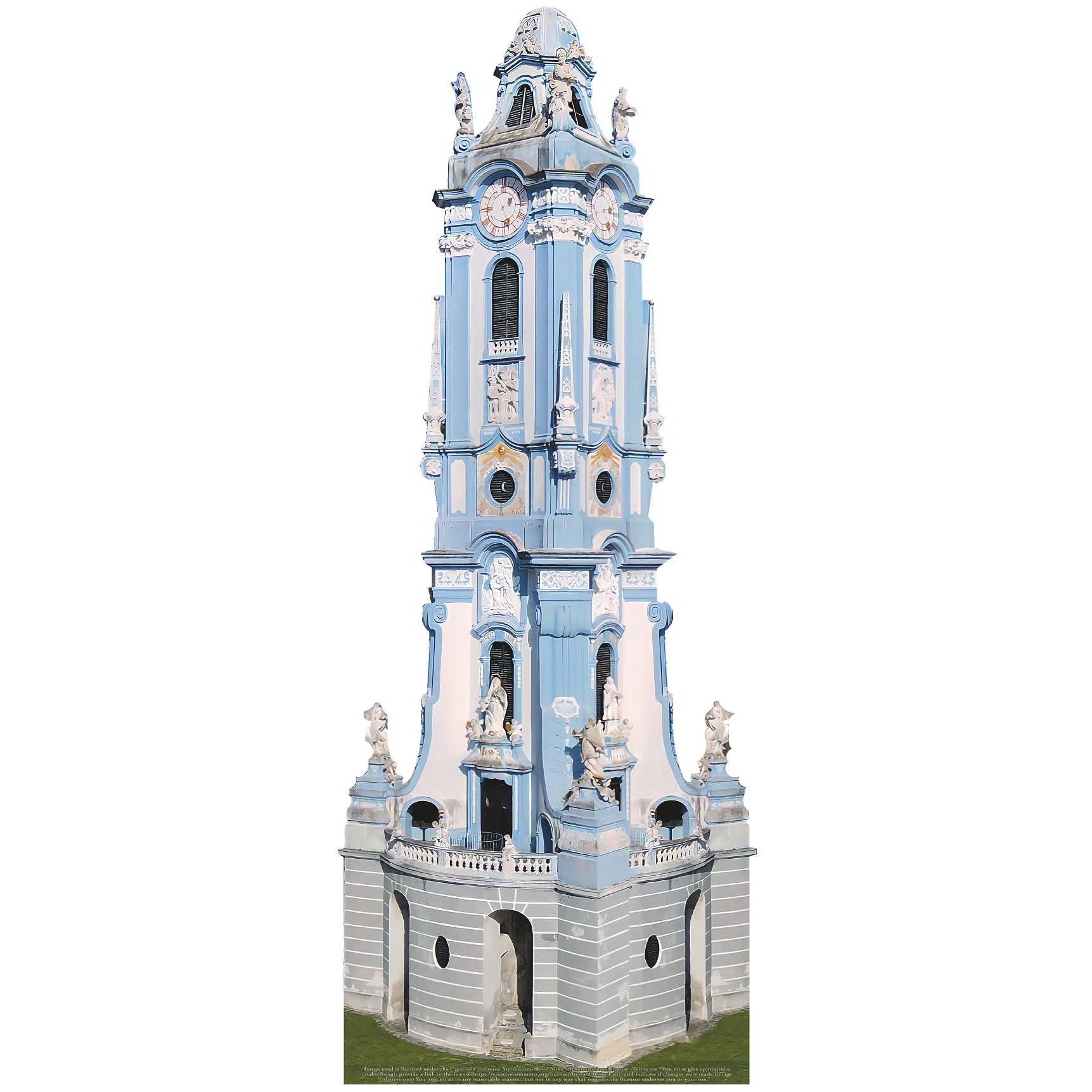 Whether you're an avid traveler who has fond memories of exploring the winding streets of Durnstein, or a history buff captivated by the tales of the region, this lifesize cardboard cutout is more than just a decorative piece. It embodies centuries of culture, heritage, and the timeless charm of Austrian craftsmanship. Adorn your space with a slice of history and let the majestic aura of the Durnstein Monastery Bell Tower inspire awe and admiration among all who see it.
