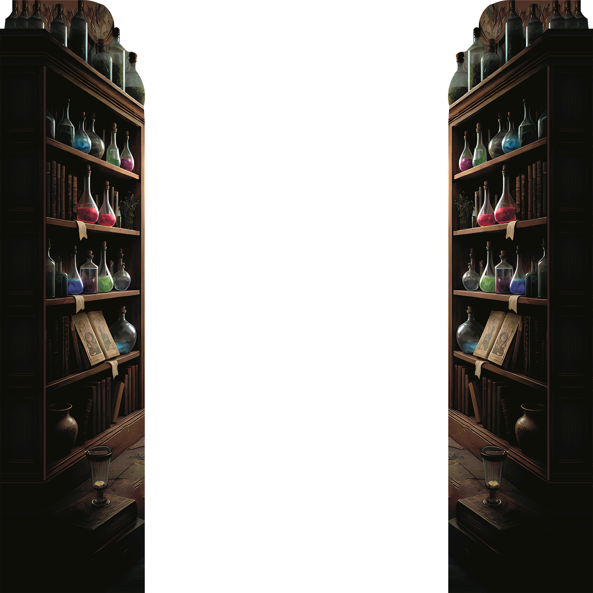 2 90x22 inch cardboard cutouts of shelves of books and potions fit for a wizard!
