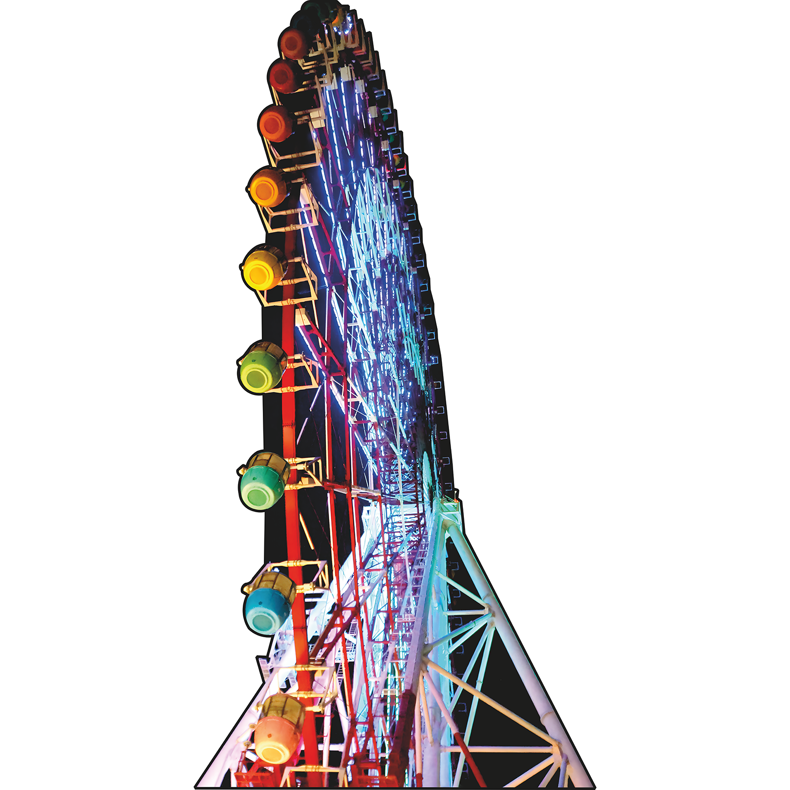 90x46 inch cardboard cutout of a vibrant lit up Ferris wheel at night. Whether you go on the ride itself take this cutout for your home décor, this is quite a sight to see!