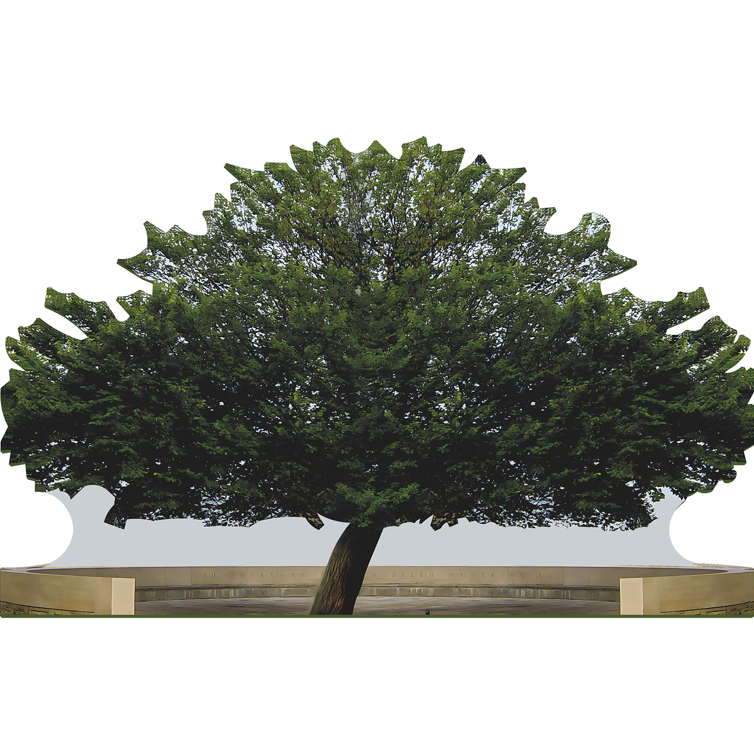 By Dustin M. Ramsey, Attribution, 72x46 inch cardboard cutout of the Survivor Tree, a legendary tree that survived the 911 attacks in new york and has become a symbol of rebirth and resilience.